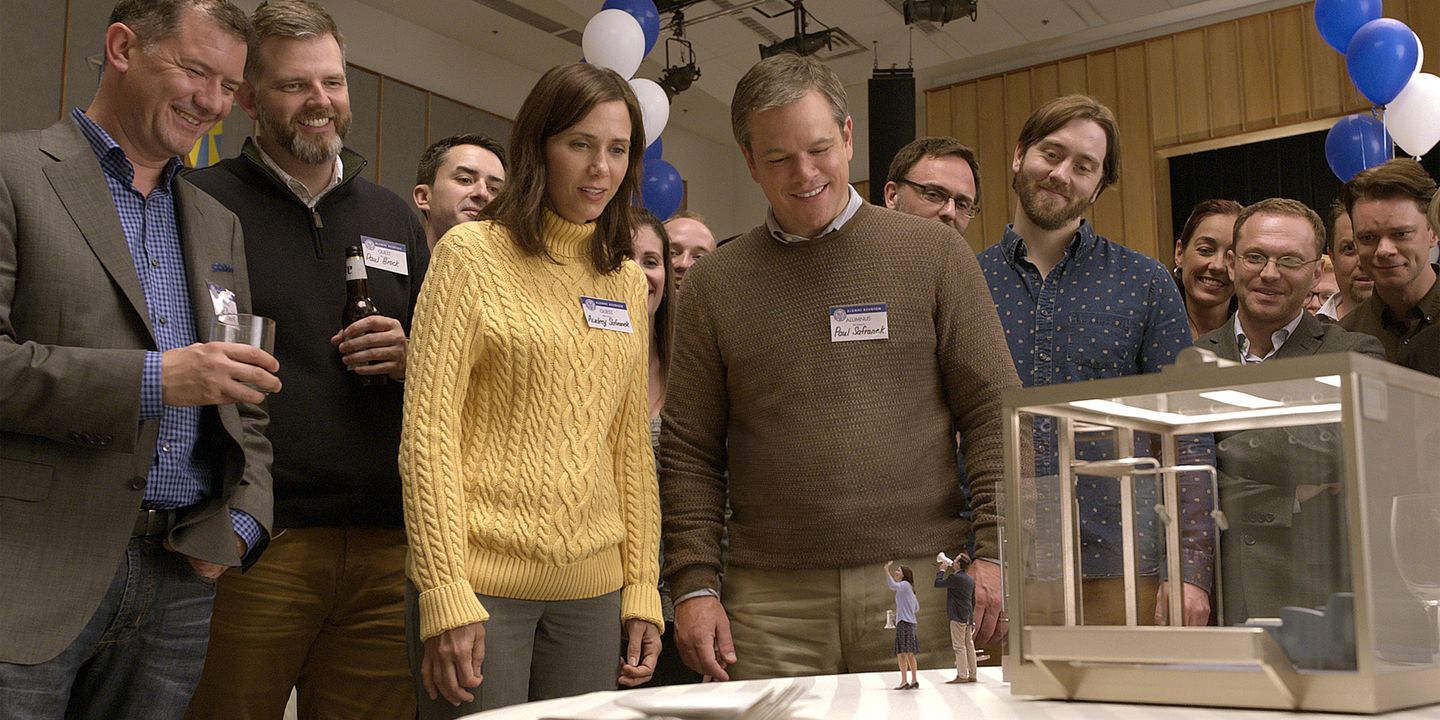 En satirisk fortelling om et ektepar som lar seg krympe. En vitenskapsmann presenterer konseptet som et tiltak for å redde planeten, men de gode hensiktene overskygges snart av grådighet- og "downsizing" blir veien til det enkle liv. Filmen er regissert av mannen bak "Descendants" og har Matt Damon og Kristen Wiig i hovedrollene.