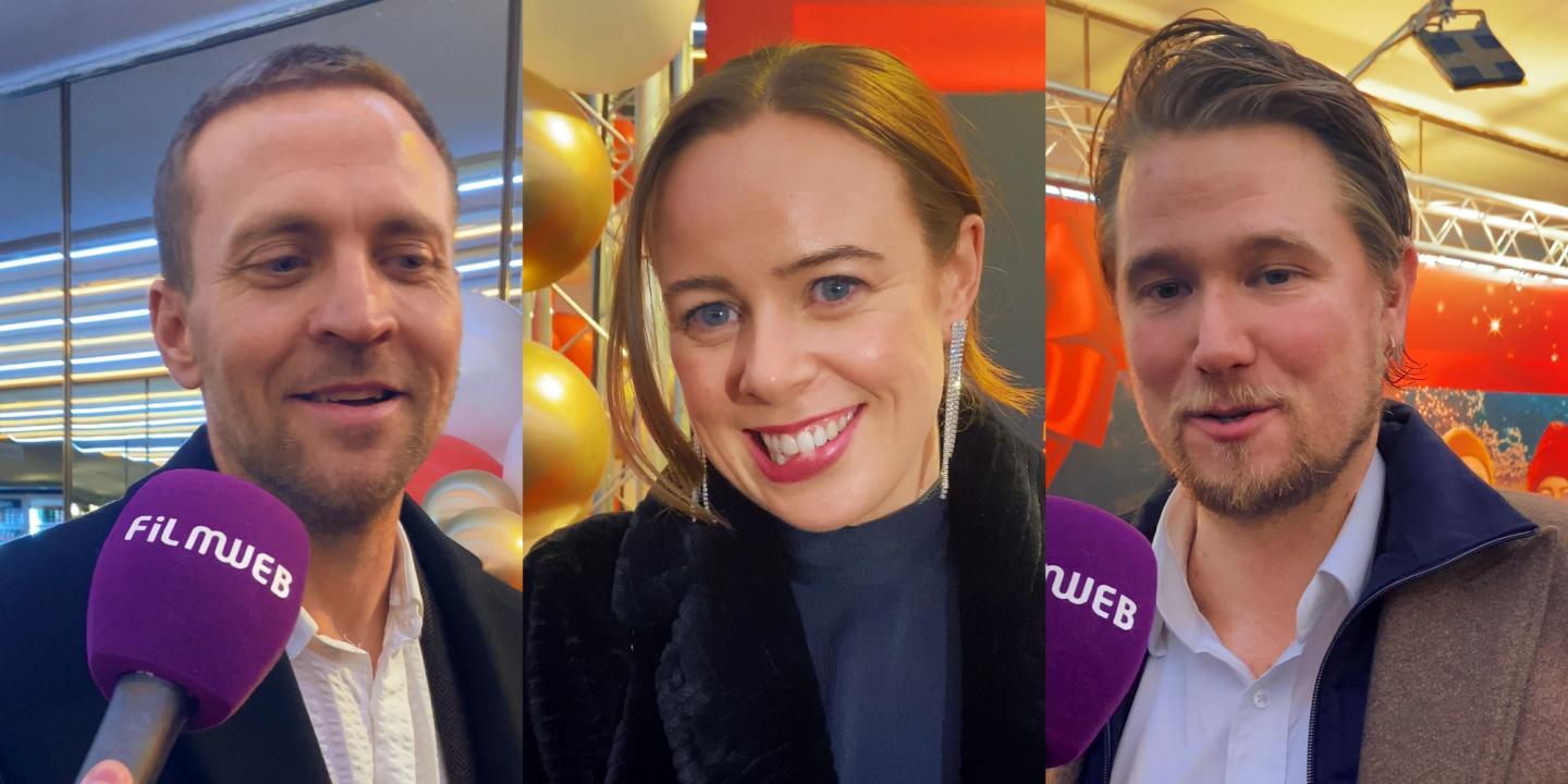 På premieren til den norske julekomedien Tre menn til Vilma møtte vi skuespillerne Tobias Santelmann, Ole Christoffer Ertvaag og Kjersti Dalseide, som gjør sin filmdebut i hovedrollen.